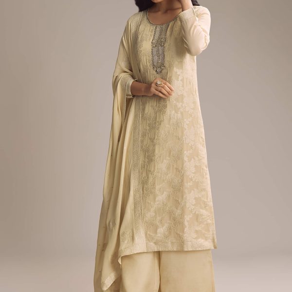 Off White Khadi Dhoti Suit With Red Hand Dyed Ajrakh Dupatta ₹7,995.00