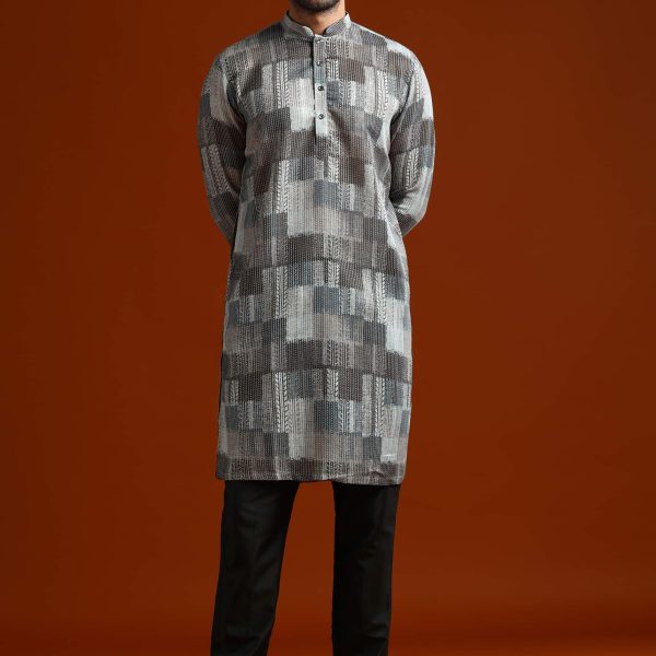 • Multicolour Silk Kurta For Men With Geometric And Floral Print ₹6,599.00